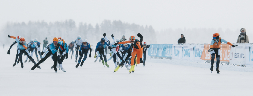 Onder winterse omstandigheden van min vijftien graden, schraal zonnetje en geen wind werd de eerste van drie wedstrijden in Zweeds Lapland verreden. Een koers met vele aanvallen, maar iedereen was nog fris en wilde erbij zitten. Het peloton blijft bij elkaar en na veertig kilometer wordt het een massasprint. Esther kiest haar moment met Veerle direct achter haar. Met een miniem verschil wint Esther de sprint van Janne Berkhout en Tessa Snoek. Veerle valt net van het podium al was het verschil maar een paar honderdste van een seconde. In het Grand Prix klassement staat Esther stevig aan de leiding, Veerle staat nog steeds tweede.