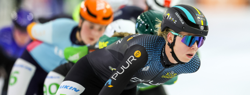 Traditiegetrouw het NK marathonschaatsen op Nieuwjaarsdag. In Thialf stond het damespeloton aan de start voor een wedstrijd over honderd ronden die zal eindigen in een massasprint.
