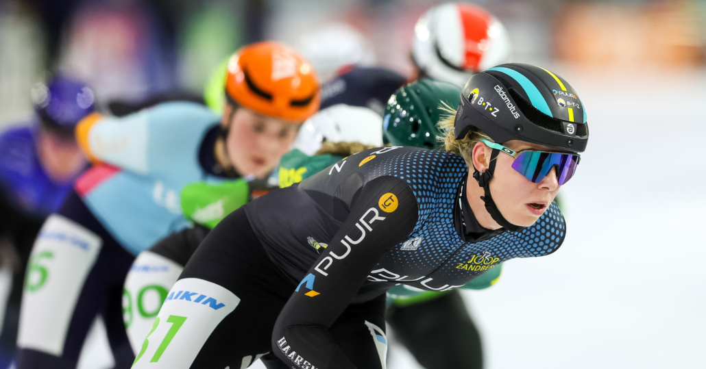 Traditiegetrouw het NK marathonschaatsen op Nieuwjaarsdag. In Thialf stond het damespeloton aan de start voor een wedstrijd over honderd ronden die zal eindigen in een massasprint.